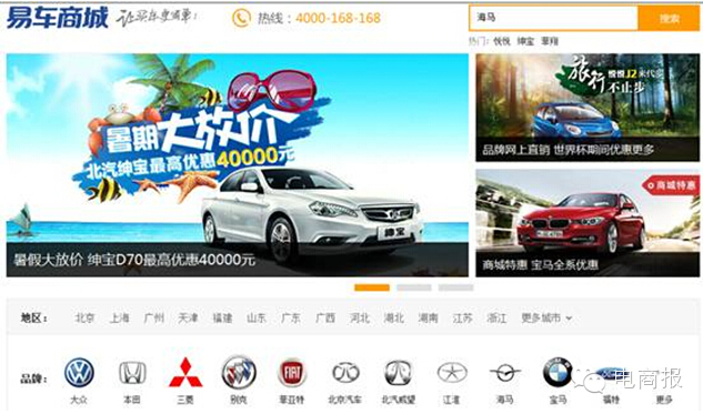 随着易车正式上线B2C模式的“易车商城”,易车凭借此前推出的C2B反向驱动经销商的“惠买车”,以及7月1日上线的以限时特价为特色的O2O模式的“易车特卖”,初步搭建了三大汽车电商模式, 正式宣告向汽车电商全方位挺进,尝试并试图最终实现真正意义上的汽车电商,为用户带来最便捷的购车服务与体验。