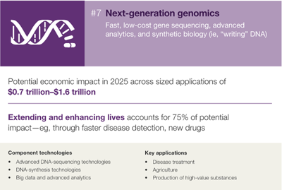 快速低成本的基因组排序,先进的分析,合成生物学(如”写“DNA)