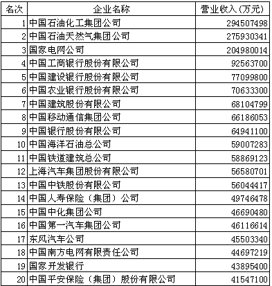 从入围门槛来看,2014中国企业500强的门槛首次突破200亿元,达到228.6亿元,比上年度提高了29.9亿元,榜单前三名企业的营业收入都超过2万亿元。