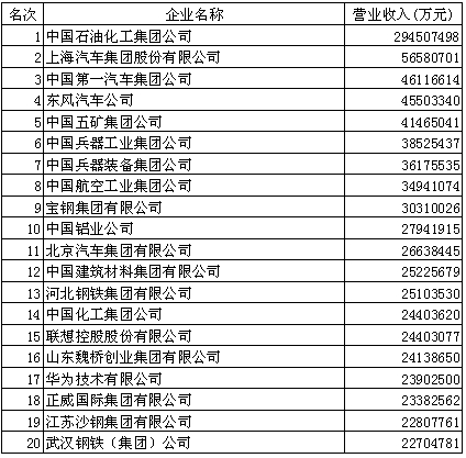 中国企业联合会、中国企业家协会2日在重庆发布2014中国企业500强榜单,中石化以2013年营业收入29450.7亿元连续10年问鼎榜首。